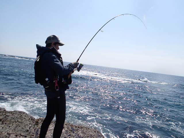 その釣り竿と、ソル友から貰った新品同様のウエットスーツという装備で、初めて釣ったのが、なんと