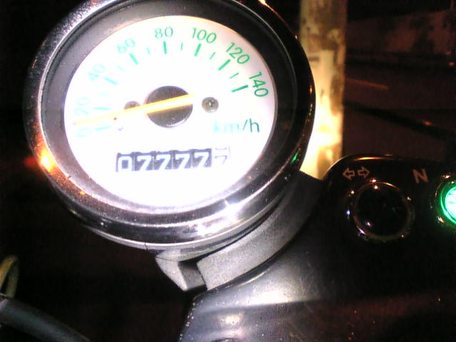 うちのバイク(バンバン200)が遂にラッキーセブンそろいました。7777、7Km